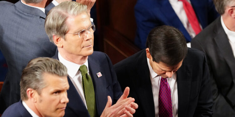 MARCO RUBIO—In a moment that has sparked both intrigue and criticism, Secretary of State Marco Rubio was caught looking at his phone during the State of the Union speech, shortly after being praised by President Donald Trump. The incident, captured by a New York Times photographer, shows Rubio reading messages from Mr. Trump’s special envoy to Venezuela, highlighting the complex and often tense relationship between the U.S. and Venezuela.